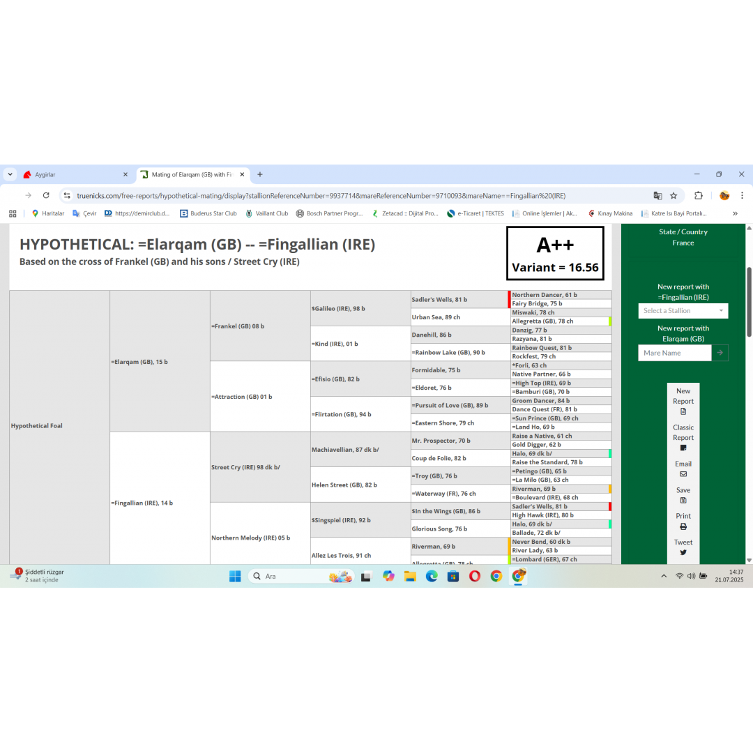 BABASI YILIN FLAŞ AYGIRI OLUP ANNESİ BİR LION HEART KIZIDIR.3 ANNE PRINSESS RENESIS ÜNLÜ KISRAK RİBELLA'NIN KARDEŞİDİR.
